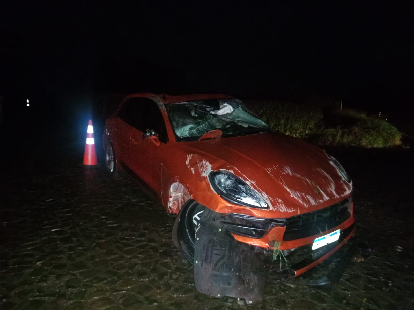 De acordo com as informações, o condutor da Porsche Macan relatou que um cachorro atravessou repentinamente a pista, fazendo com que ele perdesse o controle do veículo. Na sequência, o carro saiu da pista e acabou colidindo contra uma árvore às margens da rodovia.